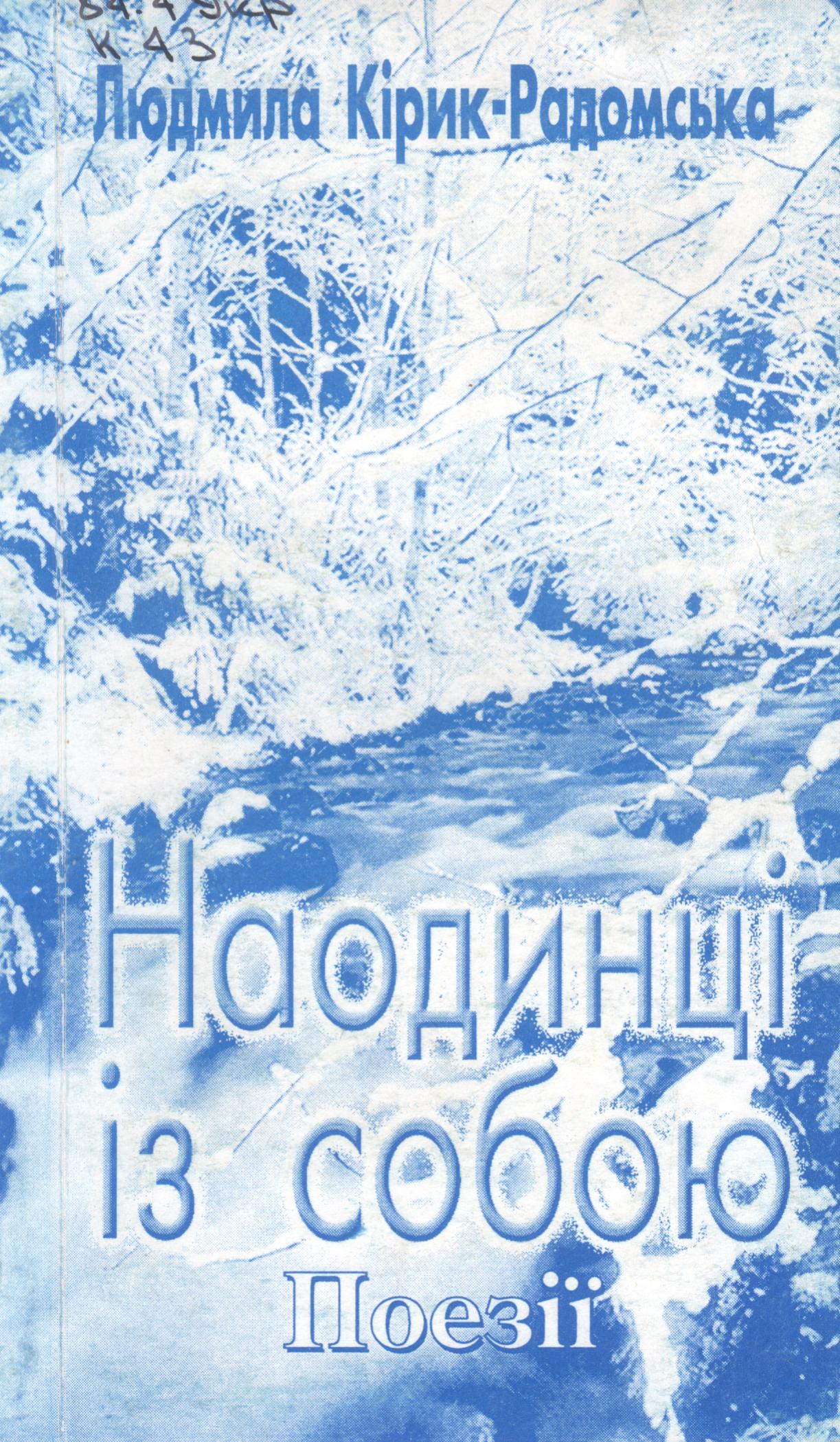 Людмила Кірик-Радомська Наодинці із собою: поезії / Людмила Кірик-Радомська. - Тернопіль: Поліграфіст, 1999. - 101 с.