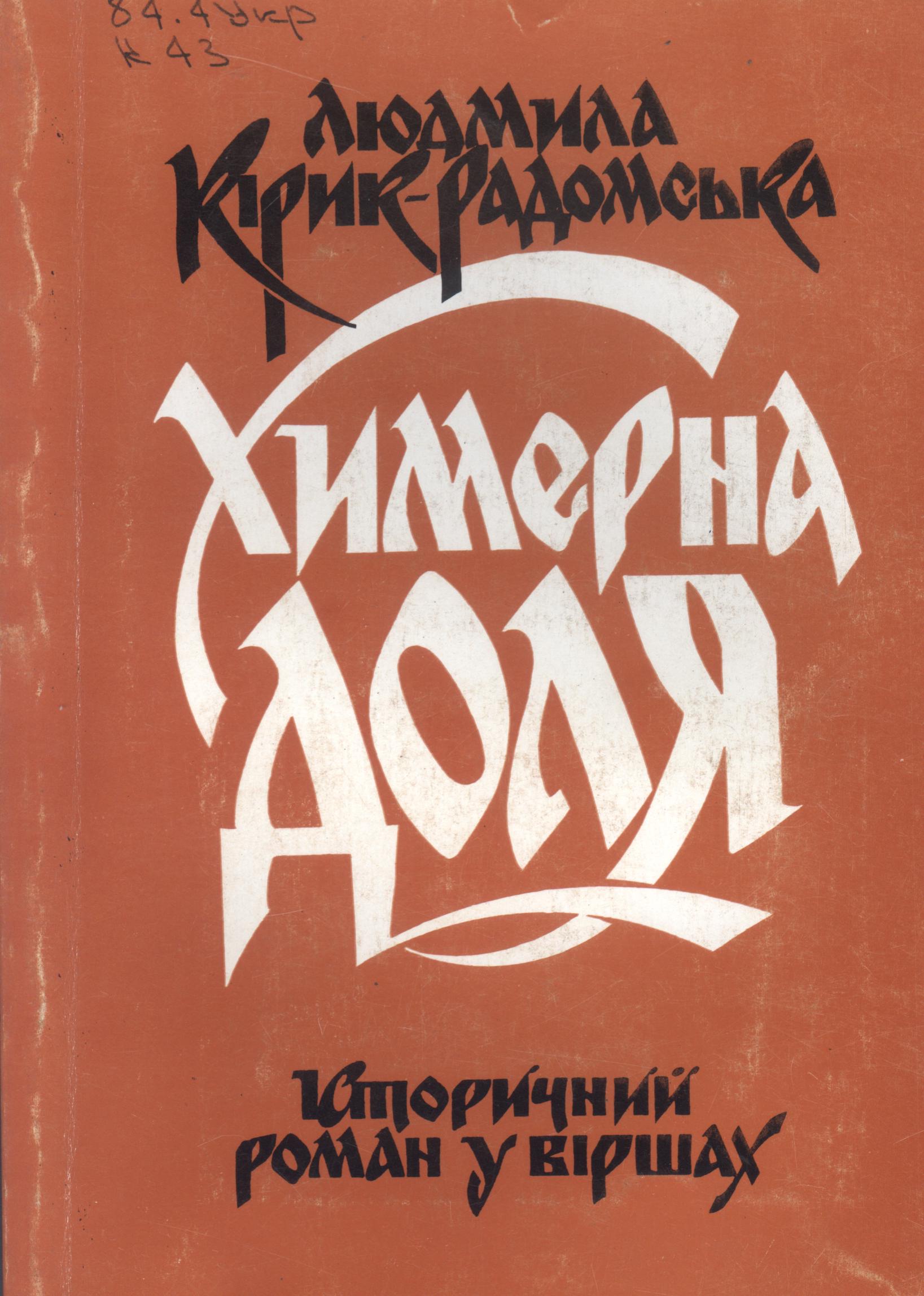 Перша книга історичного роману у віршах "Химерна доля "поетеси Людмили Кірик-Радомської побачила світ у 1994 році.