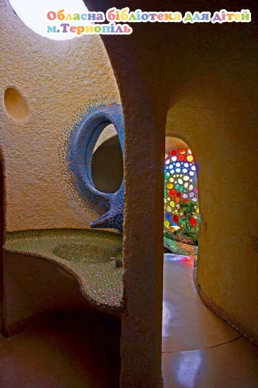 Днем сонячні промені проходять всередину через овальні світлові люки, забезпечуючи кожне приміщення природним освітленням. Різнобарвні вітражі створюють атмосферу чарівництва, переміщають в іншу реальність, захищають від сторонніх поглядів: власники такого будинку, як і морські мешканці красивих раковин, не люблять підвищеного інтересу до своїх персон.