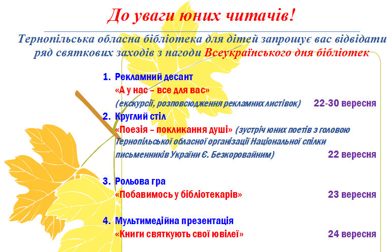 » Заходи з нагоди Всеукраїнського дня бібілотек
